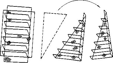通過重新切割組合可組成扇形曲面,同樣可折疊綁扎形成三角形網(wǎng)箱結(jié)構(gòu),通過這種方式來處理拐角和彎道處的施工。