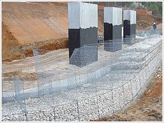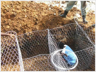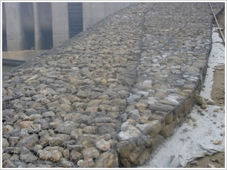 格賓石籠技術是指將抗腐耐磨高強的低碳高鍍鋅鋼絲或鋁鋅合金鋼絲(或同質包塑鋼絲) ,編織成雙絞、六邊形網(wǎng)目的網(wǎng)片,根據(jù)工程設計要求組裝成蜂巢網(wǎng)箱,并裝入塊石等填充料的一項工程技術,這種蜂巢型結構,能符合力學的原理,是一個同性質的巨大塊狀結構體。